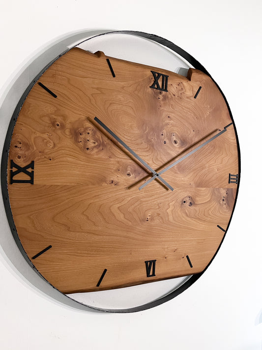 An extra large rustic modern wall clock encased in a wooden barrel ring can be an impressive statement piece for your rooms. This design combines the rustic aesthetic of wood with a contemporary touch, and the size makes it an eye-catching element in your living space. You can find such clocks online in different styles and finishes to discover the perfect addition to your home.