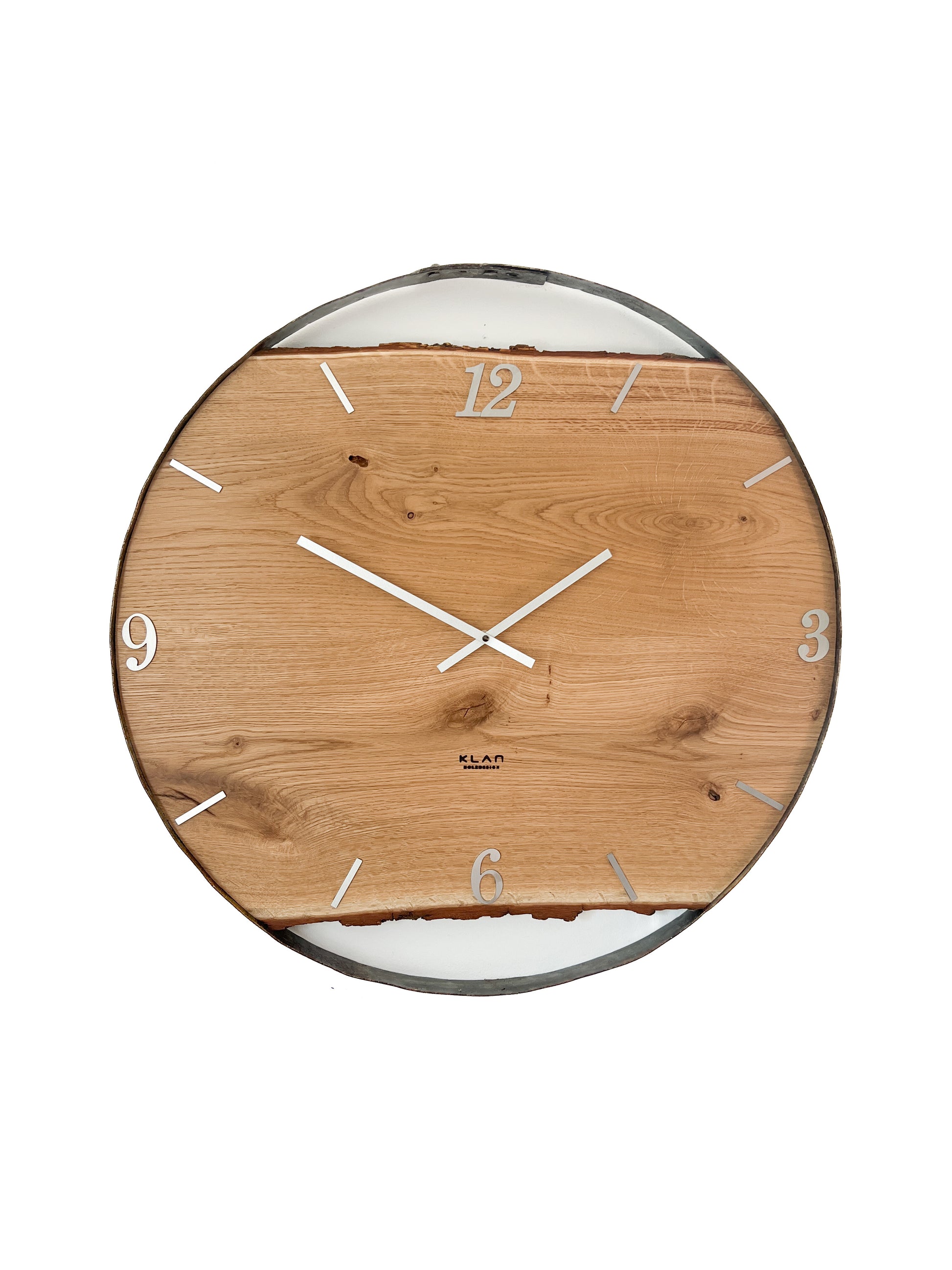 Eine moderne Wanduhr aus Eichenholz, umgeben von einem Antiken Weinfassring, behandelt mit Bienenwachs und ausgestattet mit einem geräuschlosen Quarzuhrwerk, wäre zweifellos ein herausragendes und einzigartiges Kunstwerk für die Wanddekoration.