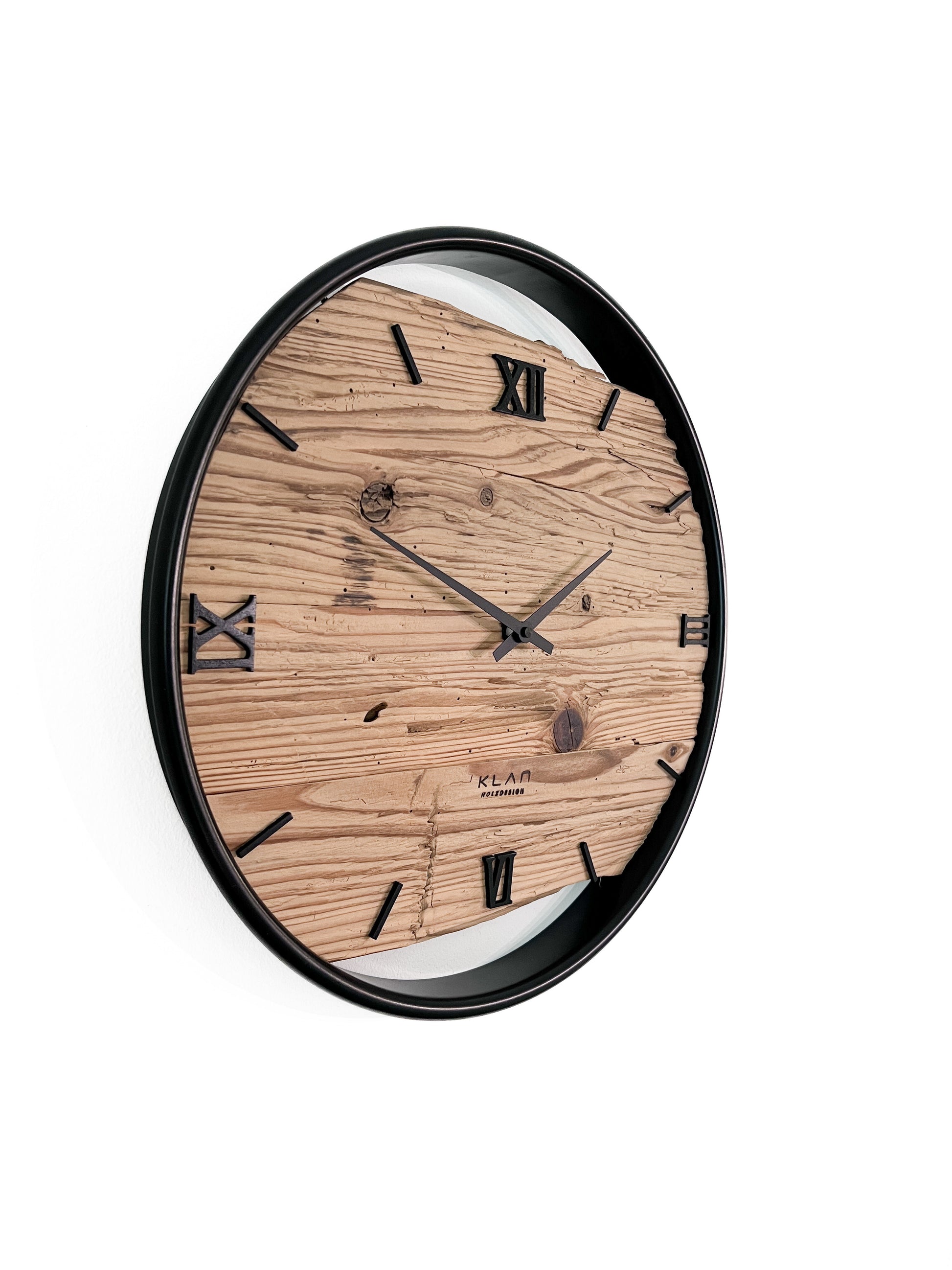 Produktbeschreibung: Diese einzigartige Wanduhr besteht aus rustikalem Altholz Fichte. Das Holz wurde gebürstet und naturbelassen, um seinen ursprünglichen Charme und Charakter zu bewahren. Es wird von einem schwarzen pulverbeschichteten Edelstahlring umgeben, der einen eleganten Kontrast zum Holz bildet.